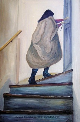 No outro lado, não sei quem está. Às vezes, oiço os passos de um homem cansado. Doente, pela certa. Magro e silencioso. Tem um casaco de fazenda com uns quadrados enormes. Não gosto do casaco. Porque abafa dores desbotadas. Desânimos que não consegue abandonar no hospital. Devia. Entra em casa sempre com pressa. Estende a roupa para depois a apanhar. Come peixe cozido sem sal e bebe muita água. Isso vê-se na cor da pele, no corpo franzino e na fragilidade das mãos. Tem visitas que eu bem as oiço. A ele é que não. Um senhora já de meia-idade que fala em excesso. Gorda, com uma pele desalumiada muito cansada. E um homem ainda jovem. Apanham roupa. Falam. Alinhavam os dias seguintes e vão-se embora. O homem da cave fica sozinho. É por isso que se deita cedo. Para se levantar e sair. Garanto que ele mora na cave. A porta bate sempre ligeiramente. É um bater adoentado, com robe e pantufas.